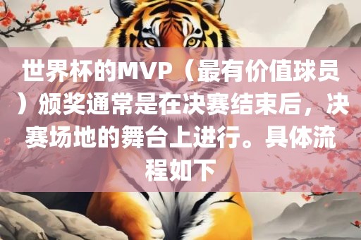 世界杯的MVP(最有价值球员)颁奖通常是在决赛结束后,决赛场地的舞台上进行。具体流程如下