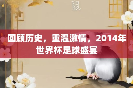 回顾历史,重温激情,2014年世界杯足球盛宴是一场足球的狂欢,全球瞩目。各大洲的顶尖球队齐聚一堂,展开激烈角逐,展现出超凡的竞技水平和足球精神。这场盛事不仅是一场体育竞赛,更是一次文化交流和友谊的展现。无数球迷为之热血沸腾,留下了难忘的回忆和激情的瞬间。
